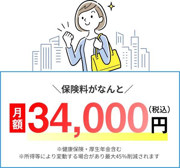 私たちのエコ社保なら業界最安値水準の34,000円(税込)で社会保険に切り替える事が可能です。それは独身の方に特化している為、不必要な経費を削ぎ落としたからこそ出来る仕組みだからです。